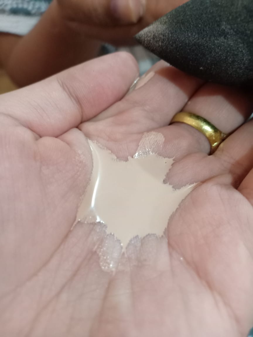 Foundation ini aseli sih bener-bener berbahan dasar air, sebelum digunakan aku kocok terlebih dahulu aku kira bakalan agak sedikit kental ternyata tidak, jadi ini seperti bedak cair kalai menurutku. Awalnya aku letakan di tangan jadi agak sedikit meluber dan tumpah, baiknya gunakan di wadah masker dan aku aplikasikan dengan menggunakan beauty blender. Pertama kali sensasi air dingin yang menyejukan, dan tidak butuh lama foundation sudah di aplikasikan. Aku teringat waktu itu pernah perawatan dokter ketika kulitku lagi berjerawat parah dan dokter memang menyarankan menggunakan make up berbahan dasar air agar tidak menutupi pori-pori.