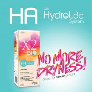 Karena X2 dengan tehnologi HA Hydroloc Systm yang akan melindungi lensa kita dari keadaan yang cepat kering. Jadi ini adalah cairan pembersih softlense, dan ini beda ya sama tetes mata. Aku sendiri hampir tiap hari mencuci softlense dengan solution ini.